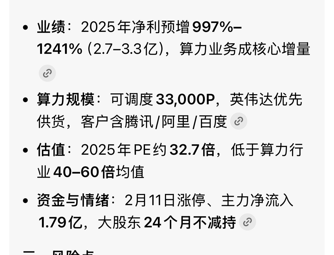 $利通电子(SH603629)$ 到目前为止,利通电子的估值还是低于算力版块的平均估值 而算力版块中,利通电子赢利能力在算力版块中处于上层,并且毛利率达到很了不起的42%,