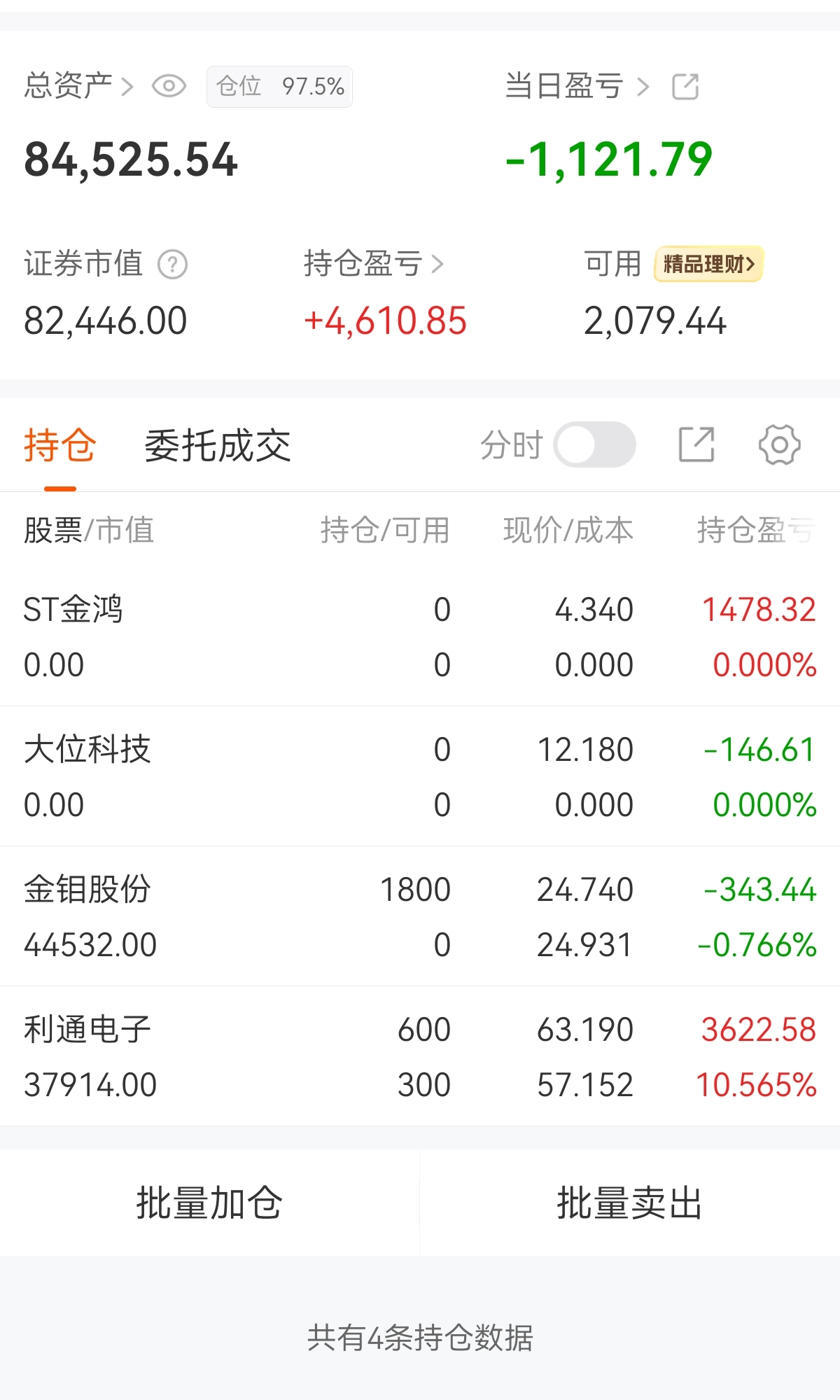开盘走完金鸿、大位。高位突破加仓利通,看到80。金钼今天本应走强,看看下午是否有
