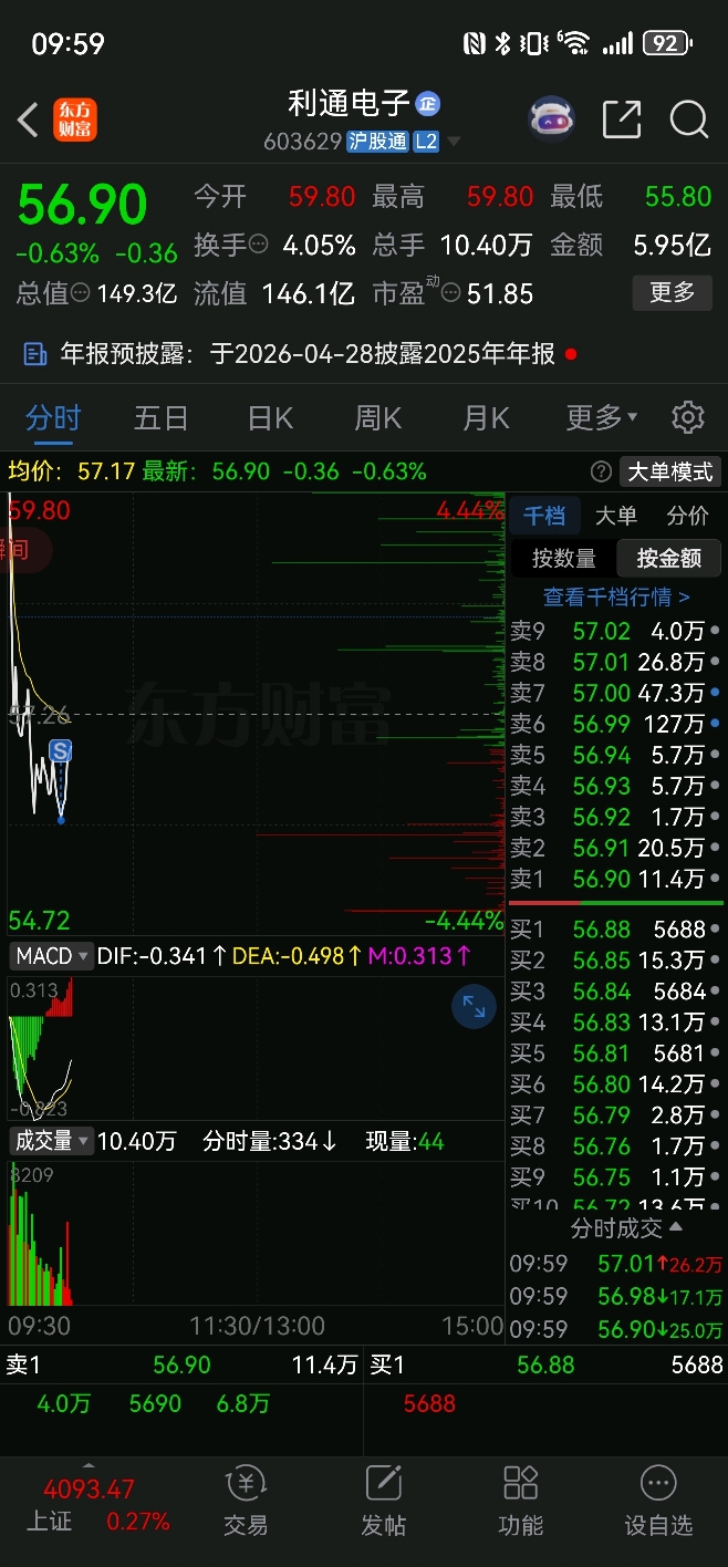 $利通电子(SH603629)$ 为了洗我一个撒