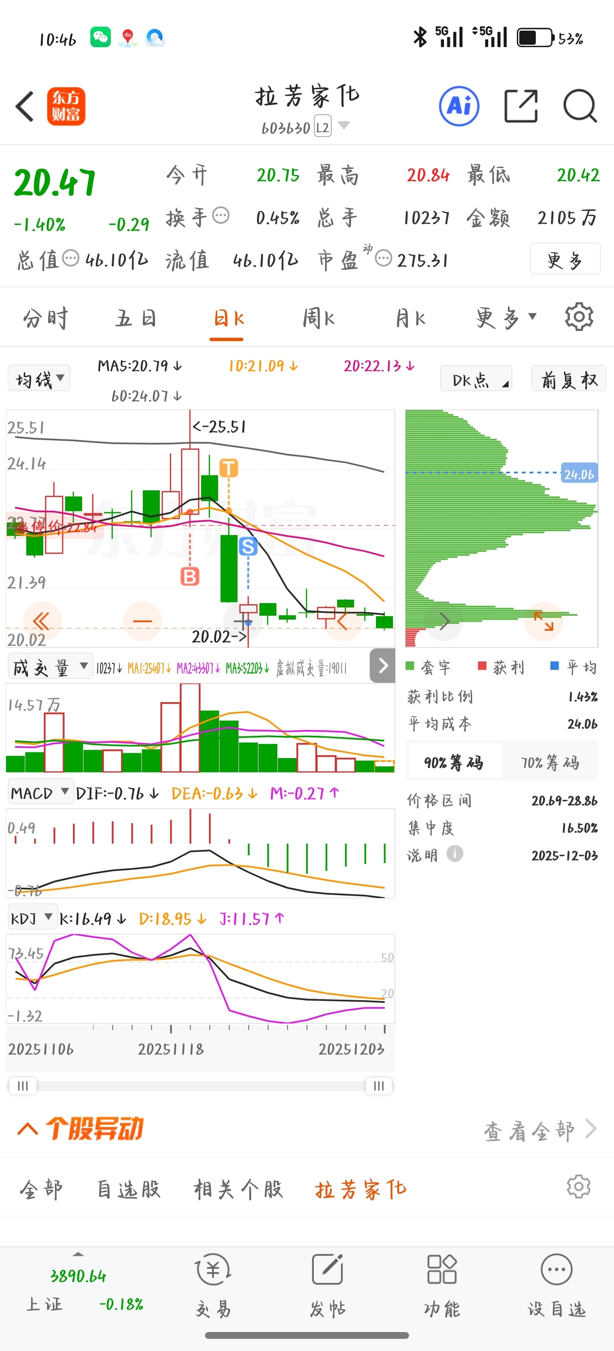 $拉芳家化(SH603630)$ 赚800没走,现在倒亏3000