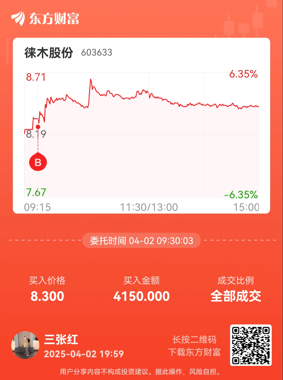 温馨提示: 1.根据《证券法》规定,禁止编造、传播虚假信息或者误导性信息,扰乱证券市场;2.用户在本社区发表的所有资料、言论等仅代表个人观点,与本网站立场无关,不对您构成任何投资建议。用户应基于自己的独立判断,自行决定证券投资并承担相应风险。《东方财富社区管理规定》
