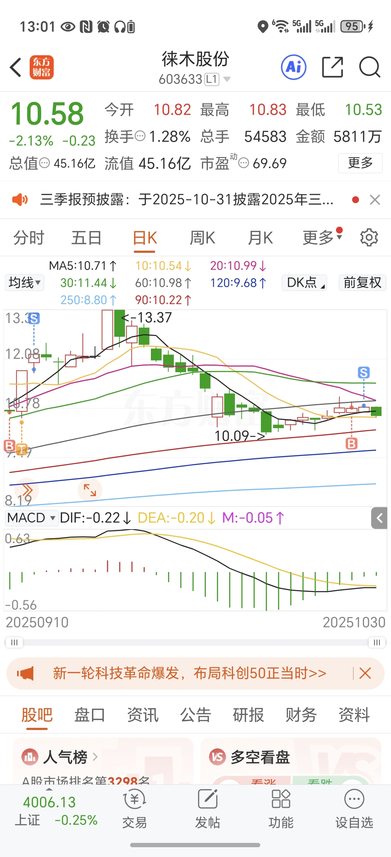 $徕木股份(SH603633)$ 还好昨天赚个生活费跑了