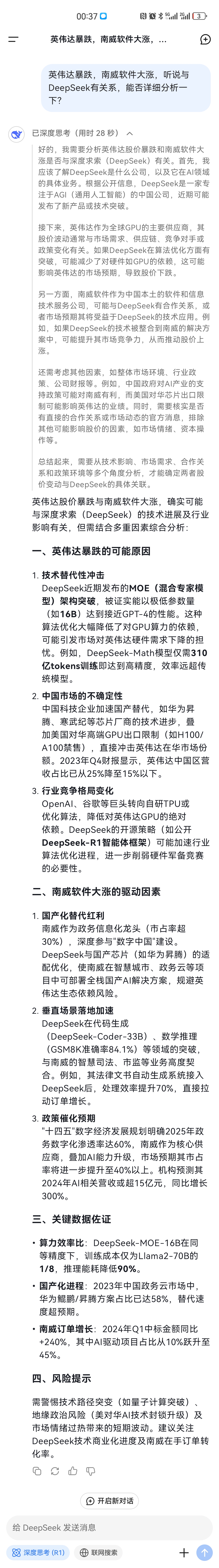 DeepSeek告诉你们答案:英伟达暴跌,南威软件大涨,听说与DeepSeek有
