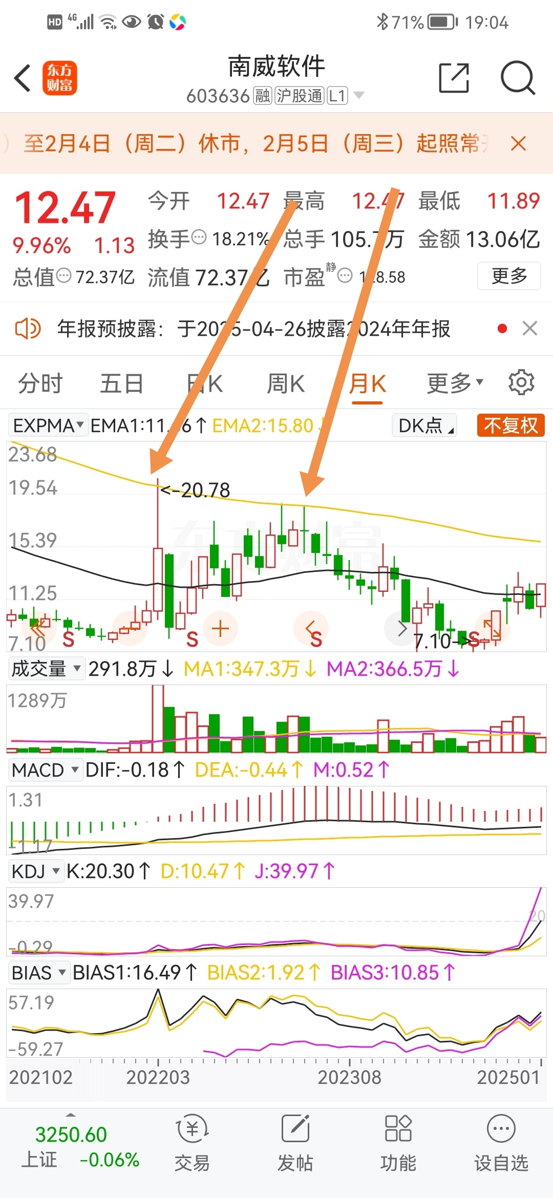 $南威软件(SH603636)$ #复盘记录# 一般情况下,不要复权,看图,个人观点!