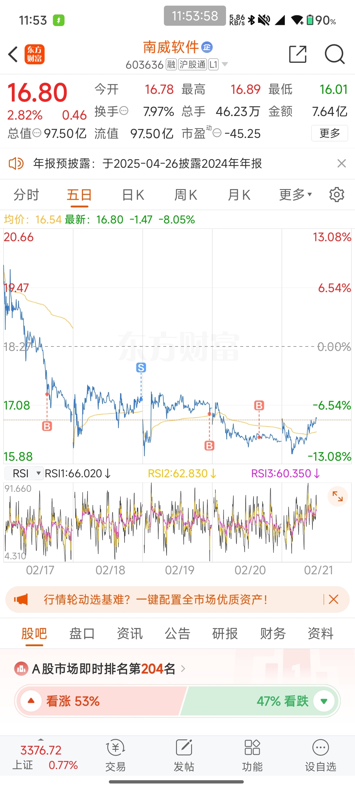 $南威软件(SH603636)$ 五天了啊 ,,累的跟孙子样 这样那样的T.都没有赚到你钱