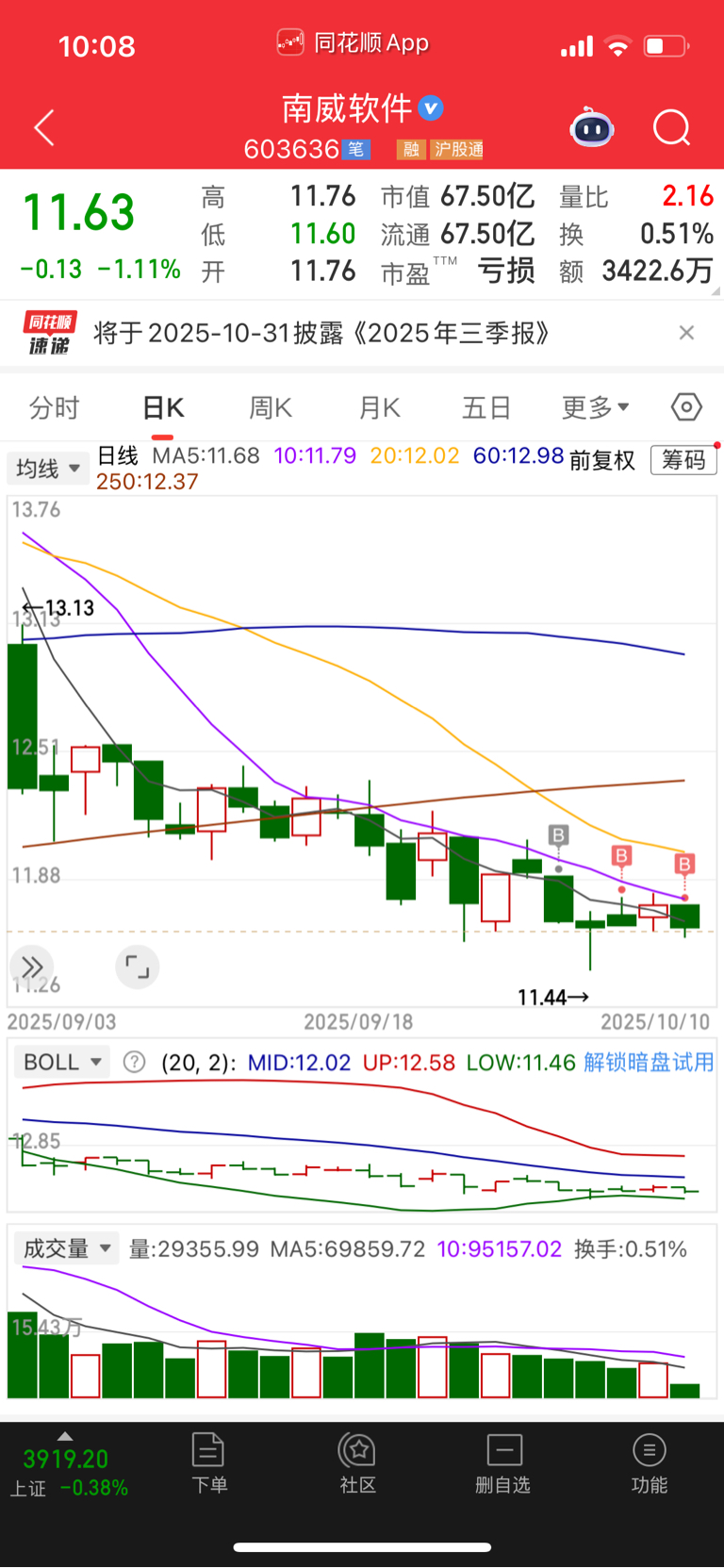 $南威软件(SH603636)$ 券商大涨,消费防御,科技高低切也该轮到南威了。个股早上涨多跌少,继续建设一个B等催化。