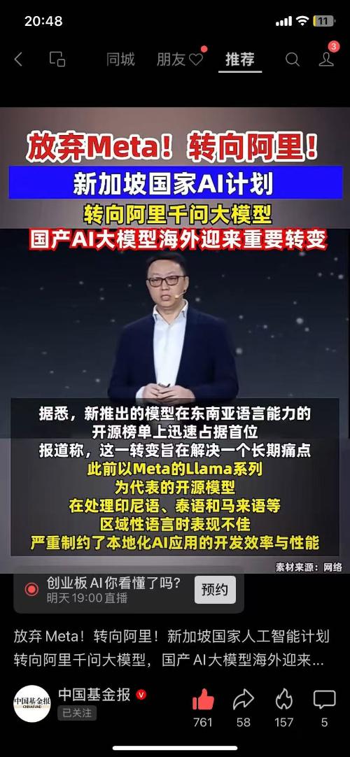放弃Meta!转向阿里!新加坡国家AI计划转向阿里干问大模型,据悉,新推出的模型