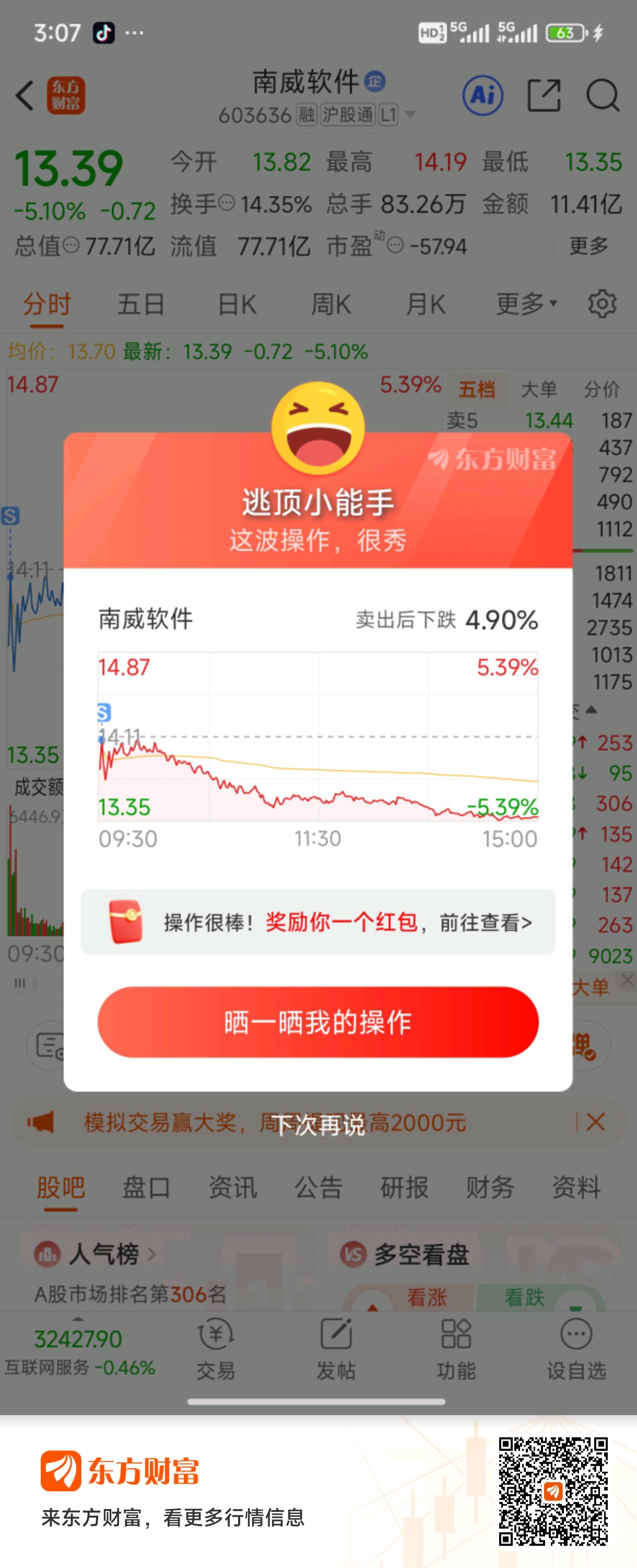 $南威软件(SH603636)$ 高位放量下跌就是主力出货危险信号啊,过几天再来!