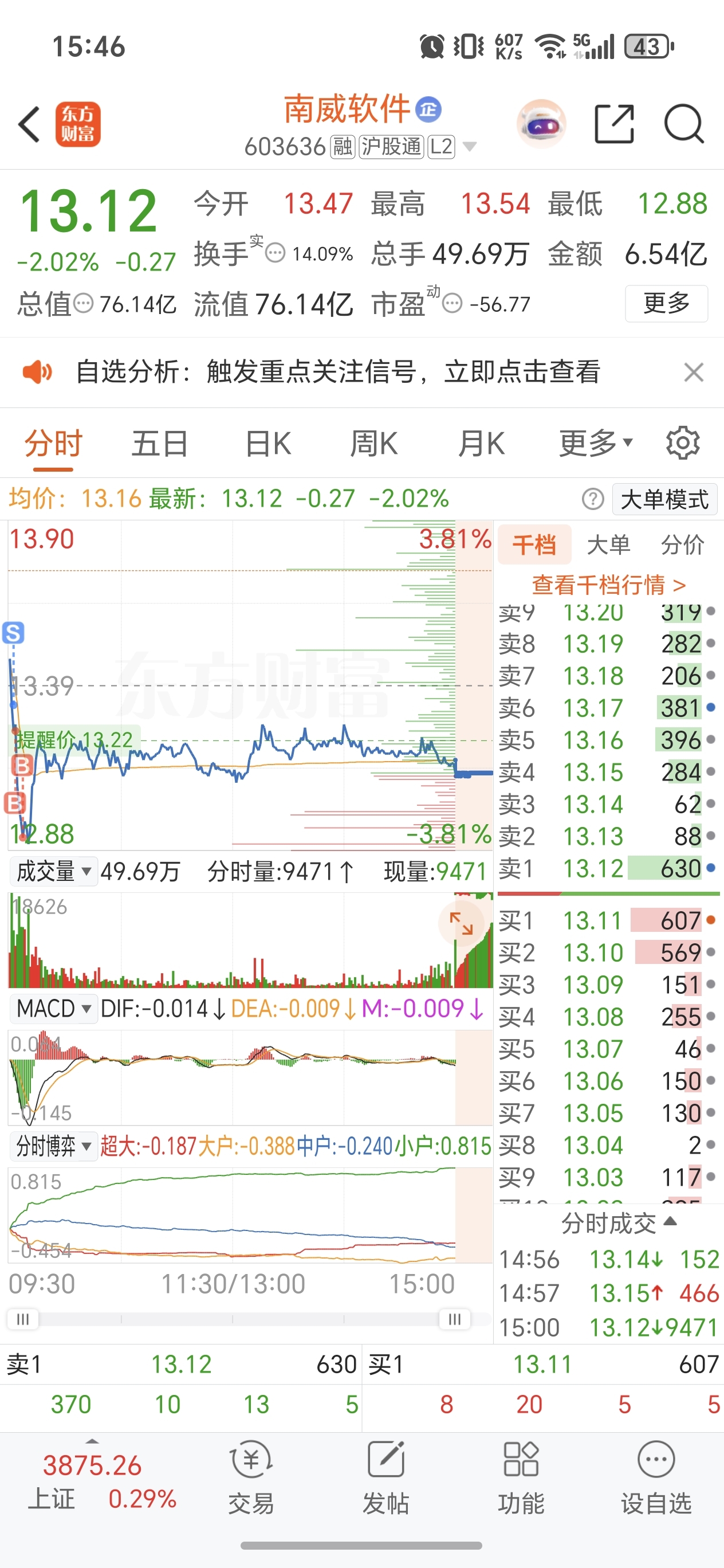 榕基继续地板,早上就顺势做了个反t(先卖后买),t了两毛。本想它不要破13.22