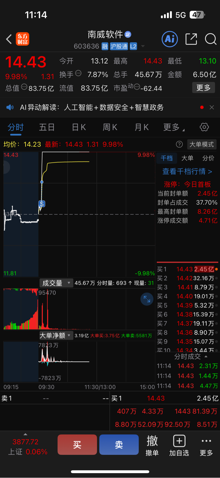 $南威软件(SH603636)$ 唉,亏怕了,保本走了