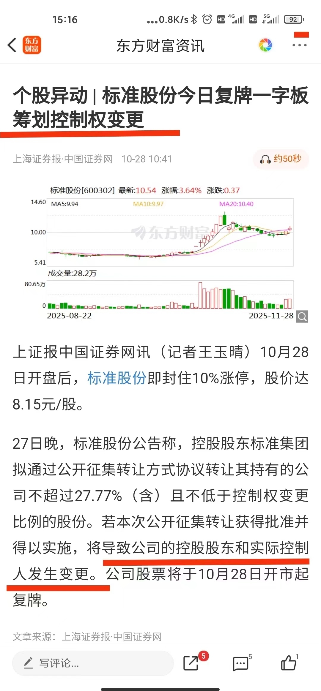 ...超级重磅..标准股份,已公告:马上就要重大重组.!史上最明确重组股,盘小,
