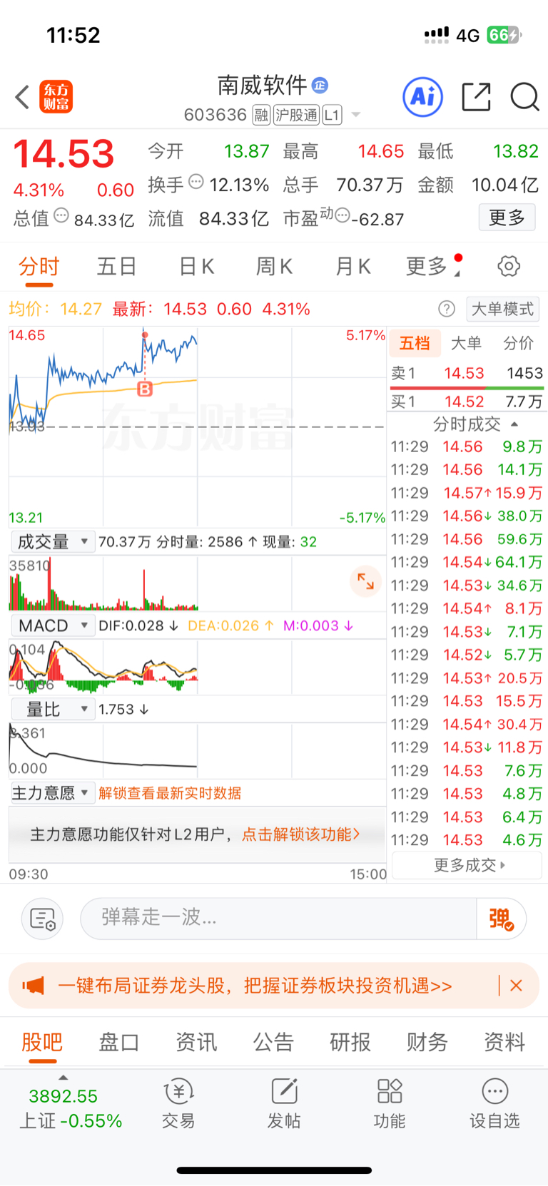 $南威软件(SH603636)$ 会不会有惊喜吖