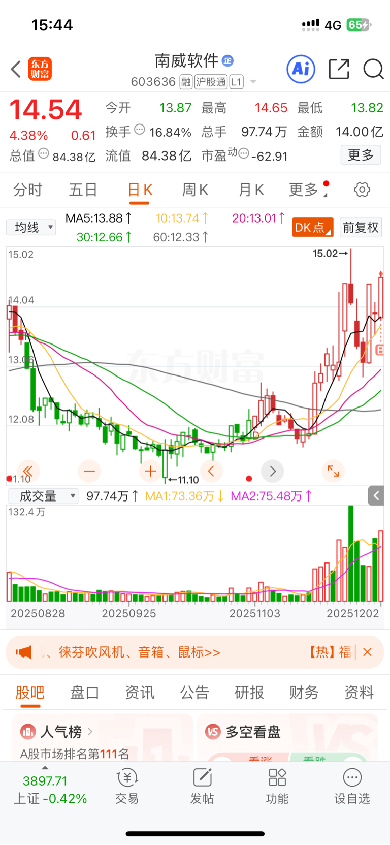$南威软件(SH603636)$ 山顶上风景真好,好凉快吖