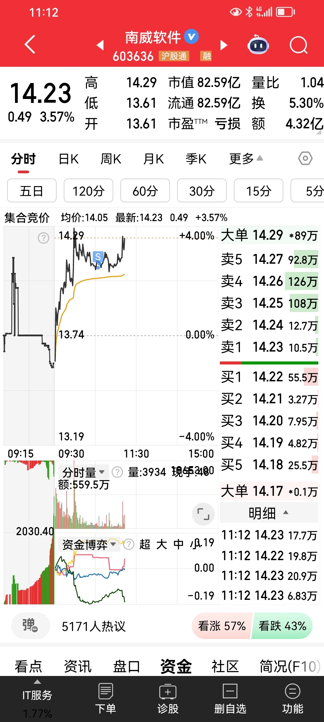 $南威软件(SH603636)$ 先跑为敬,没劲