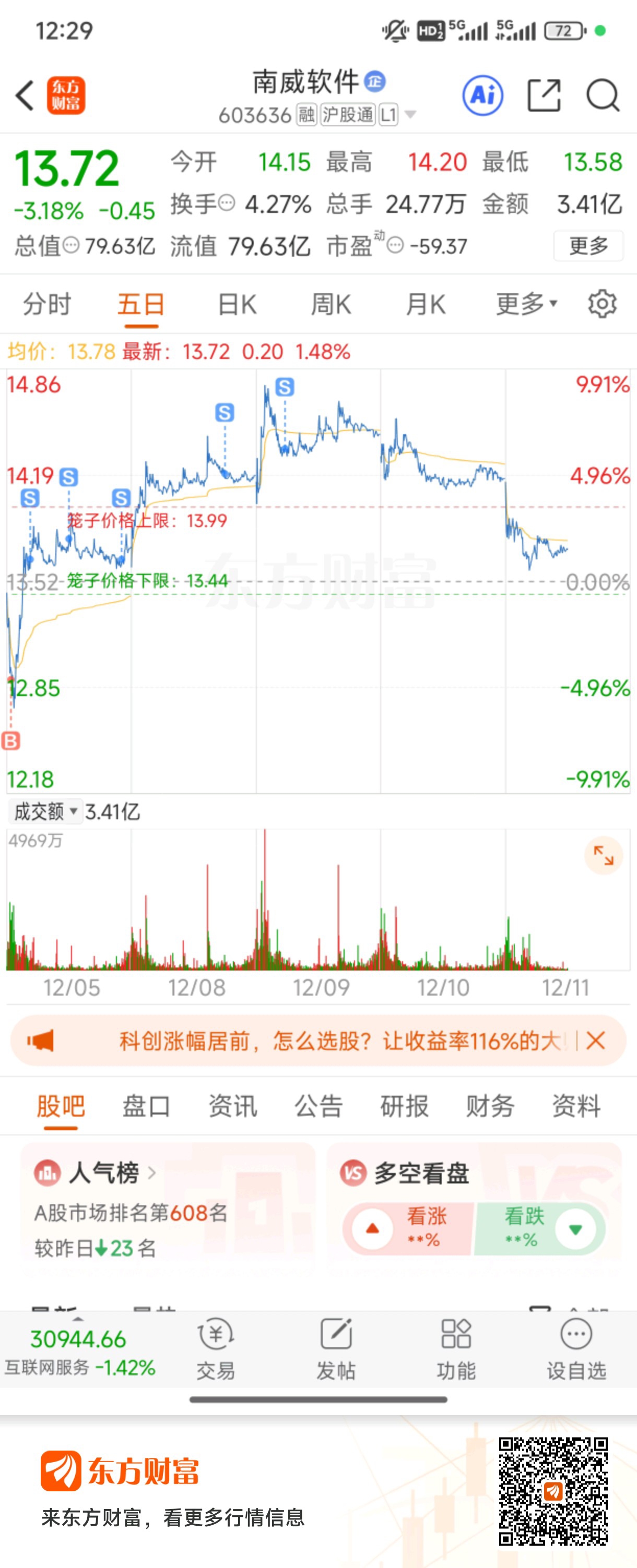 $南威软件(SH603636)$ 12.9等你继续全仓干!