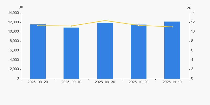 2025年8月20日至今,公司股东户数有所增长,区间涨幅为5.22%。2025年8月20日至2025年11月10日区间股价下降2.29%。