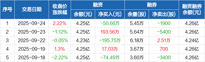 艾迪精密:融资净偿还50.66万元,融资余额4.25亿元(09-24)