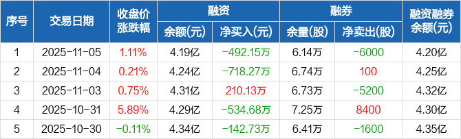 艾迪精密:融资净偿还492.15万元,融资余额4.19亿元(11-05)