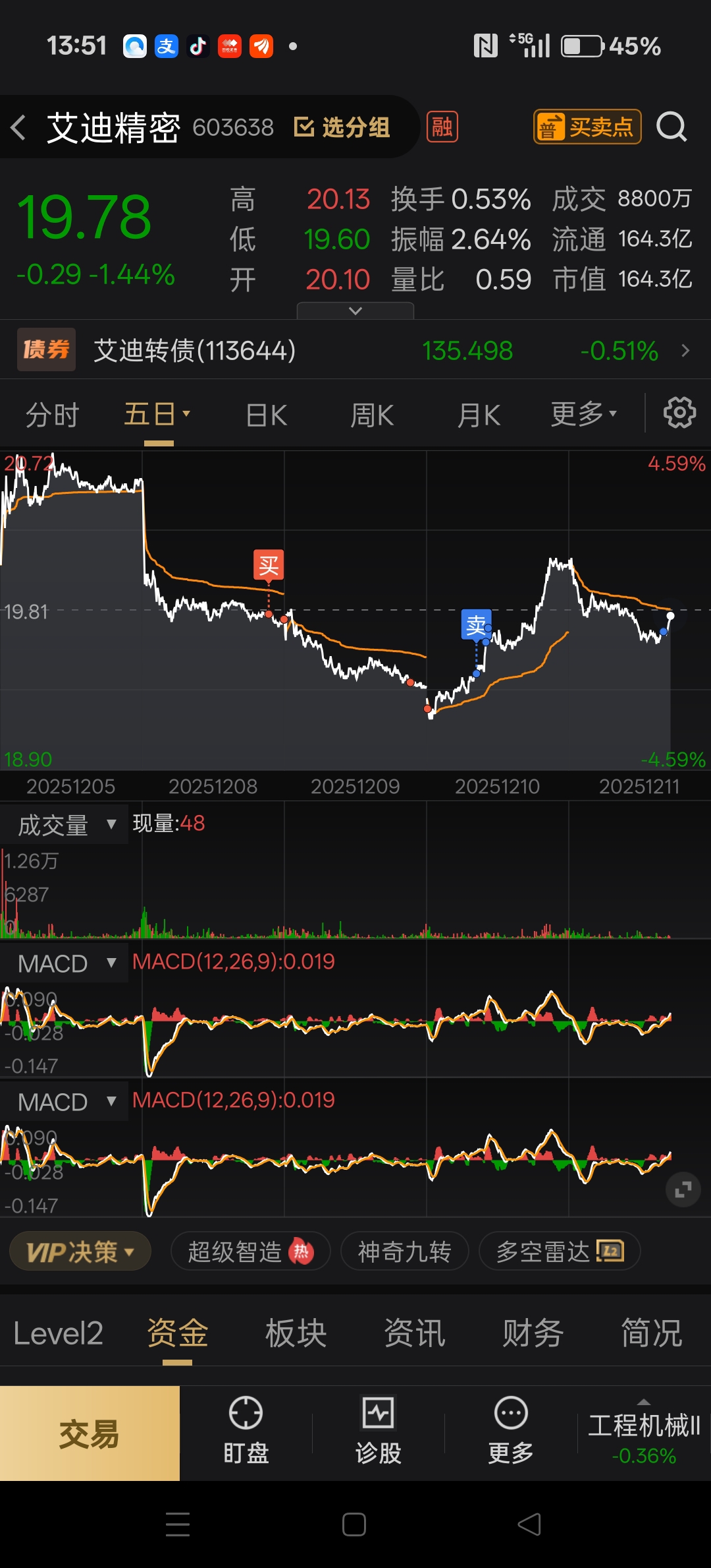 $艾迪精密(SH603638)$ 哎没拿得住,最后只赚了200多