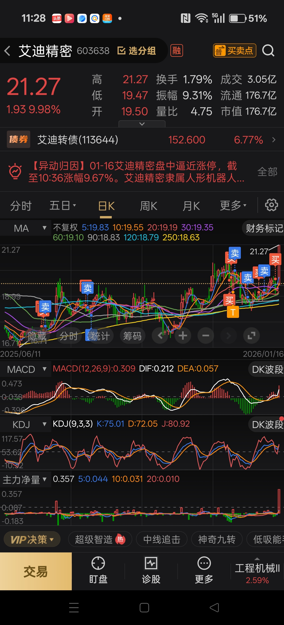 $艾迪精密(SH603638)$ 还好手上还拿着点