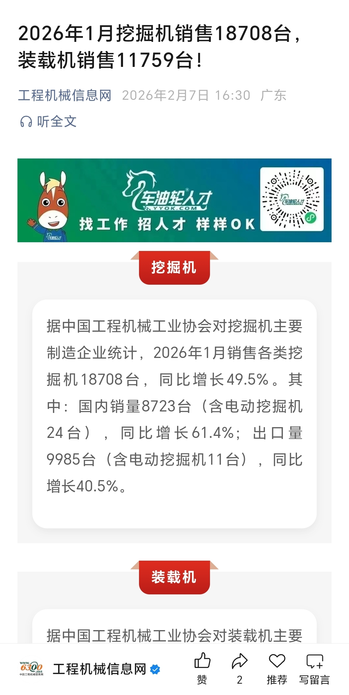 $艾迪精密(SH603638)$ 工程机械1月开门红