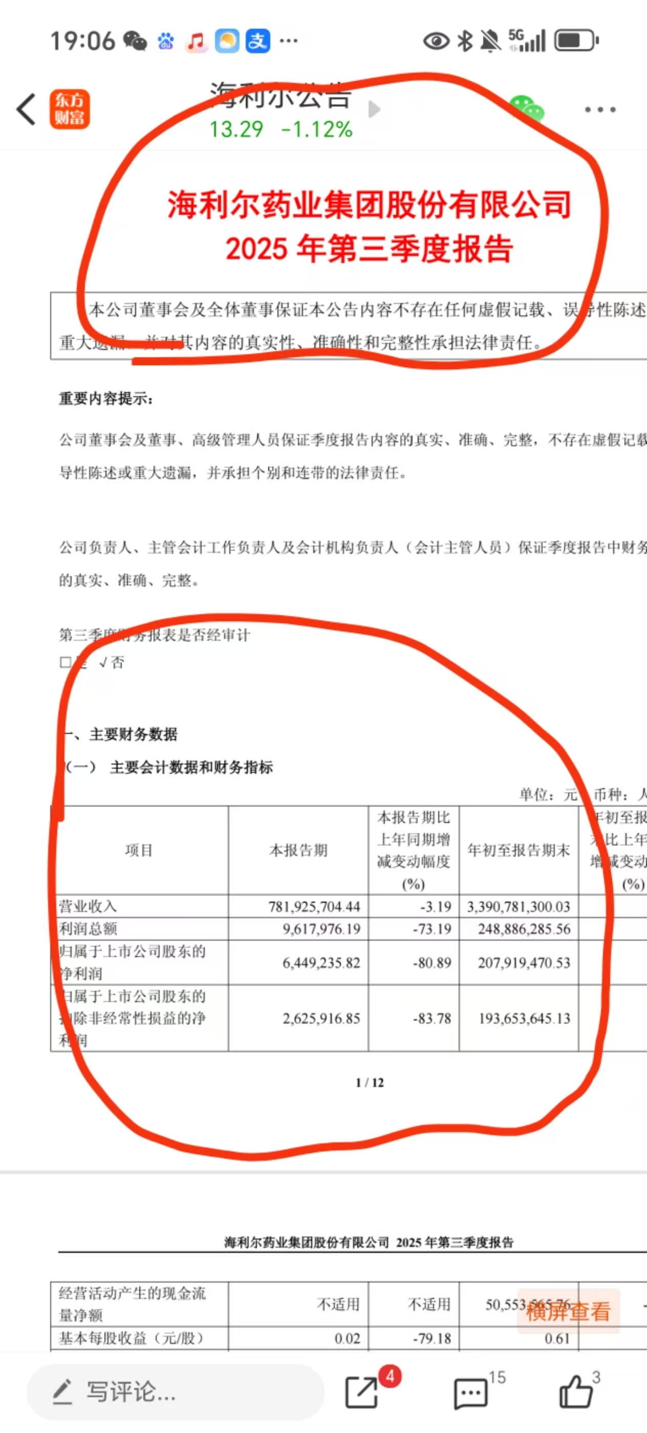 $海利尔(SH603639)$ 三季度,营业示收入7.8个亿,利润却几百万,很奇怪。营业收入仅仅降低三个多点,这意味着生产经验真是正常的!利润总额却下降八成,太可疑了!公司还不出面澄清