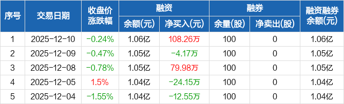 海利尔:融资净买入108.26万元,融资余额1.06亿元(12-10)