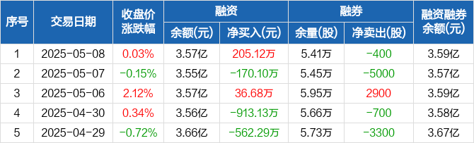 彤程新材:融资净买入205.12万元,融资余额3.57亿元(05-08)