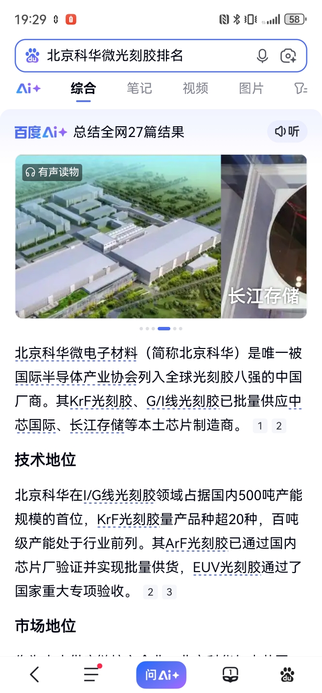 $彤程新材(SH603650)$ 彤程新材的子公司北京科华微是全球排名第八的光刻胶厂商,国内排名第一。已经批量供货中芯国际、长江存储。