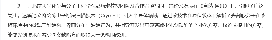 光刻胶增加半导体99%的改进良率。万润涨停,晶瑞暴涨16%