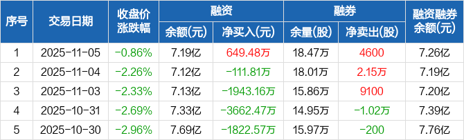 彤程新材:融资净买入649.48万元,融资余额7.19亿元(11-05)
