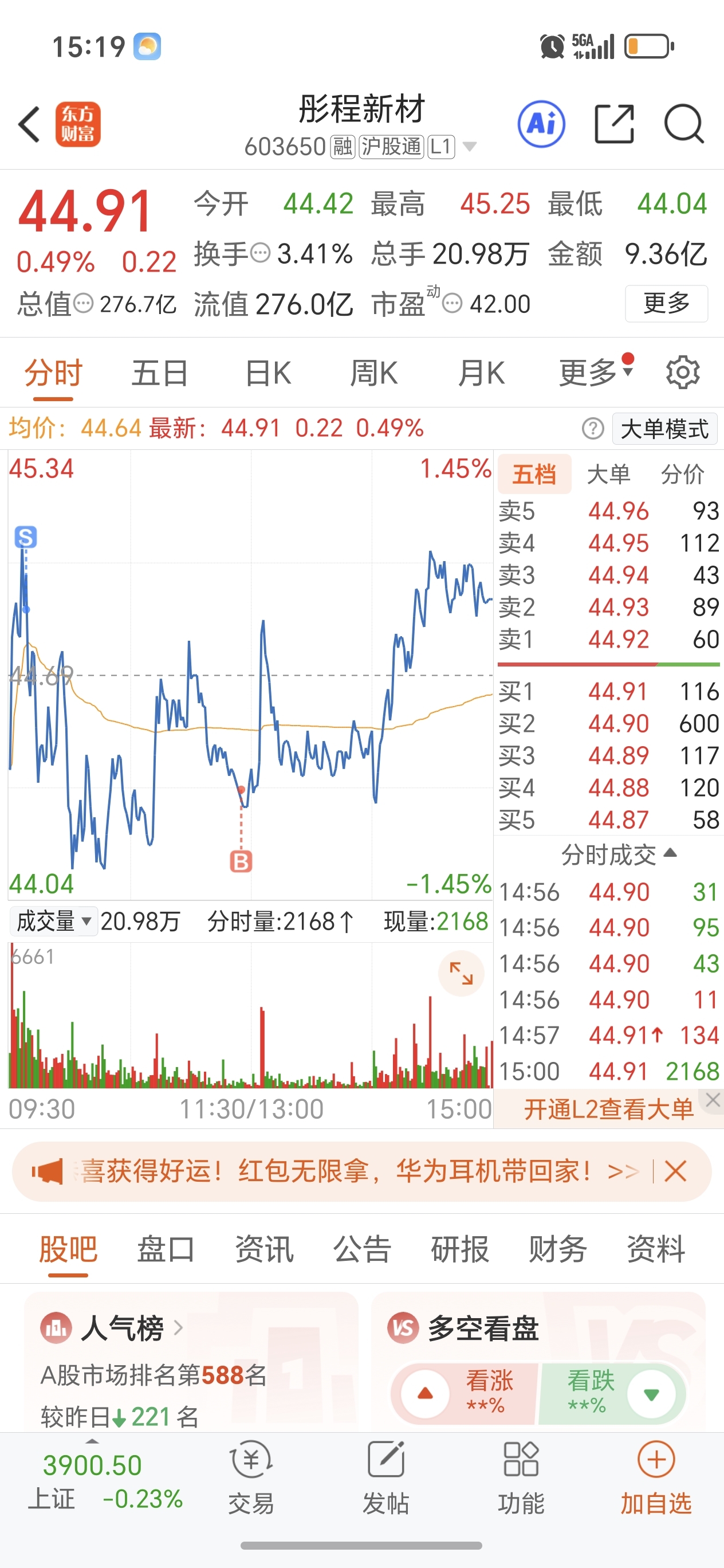 $彤程新材(SH603650)$ 等你一个板也太难了吧