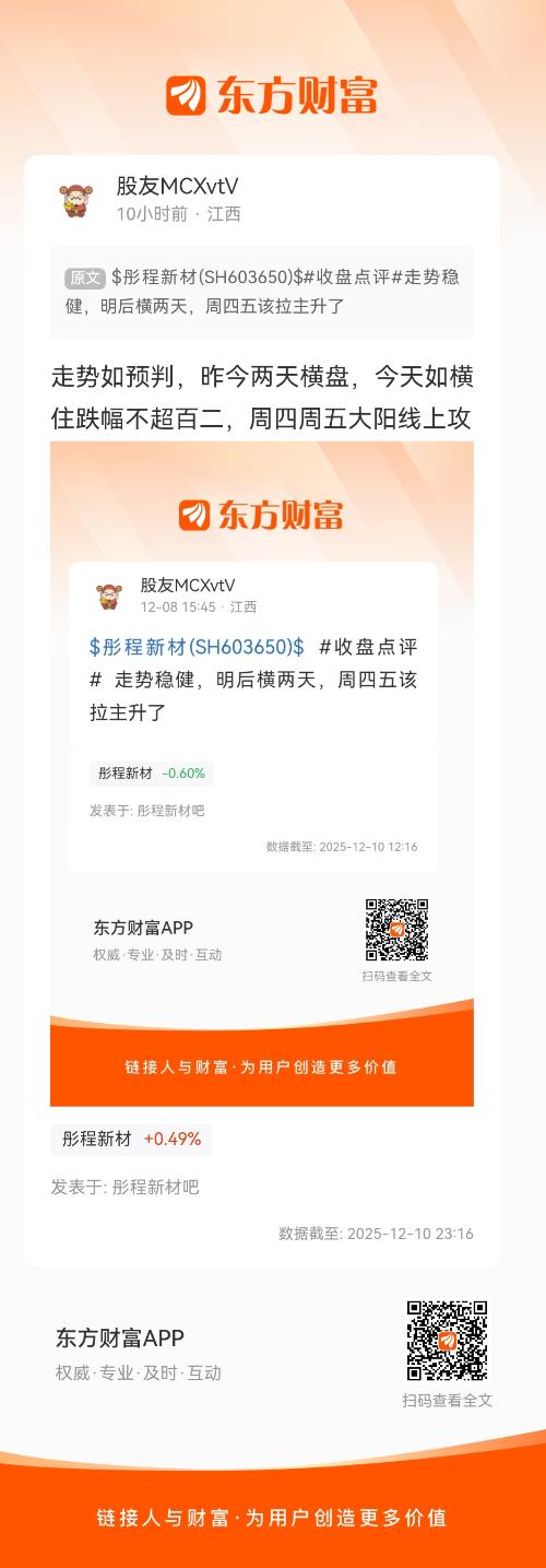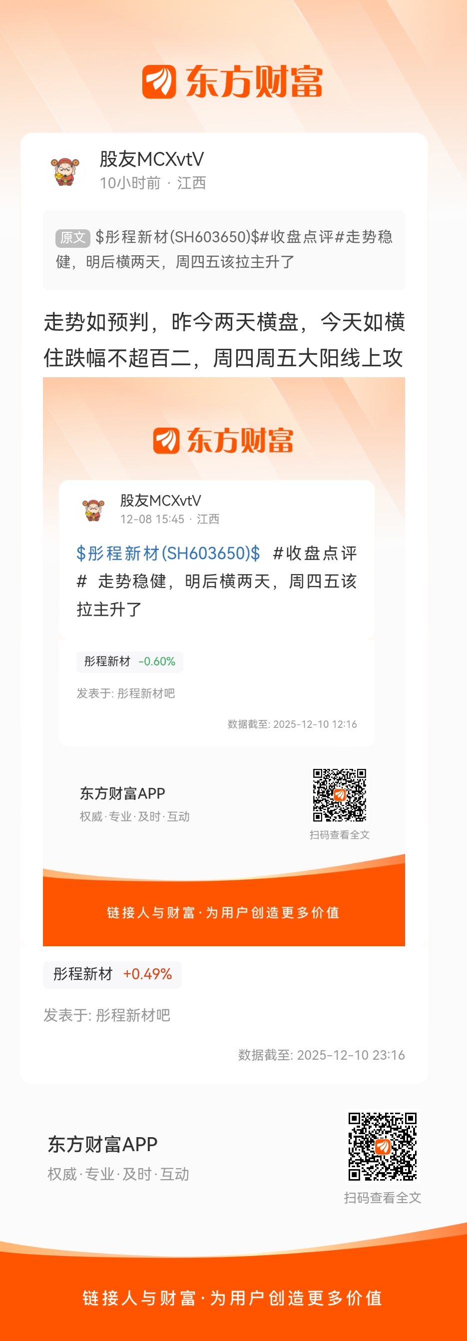 $彤程新材(SH603650)$  #收盘点评#  走势稳健,明后横两天,周四五该拉主升了