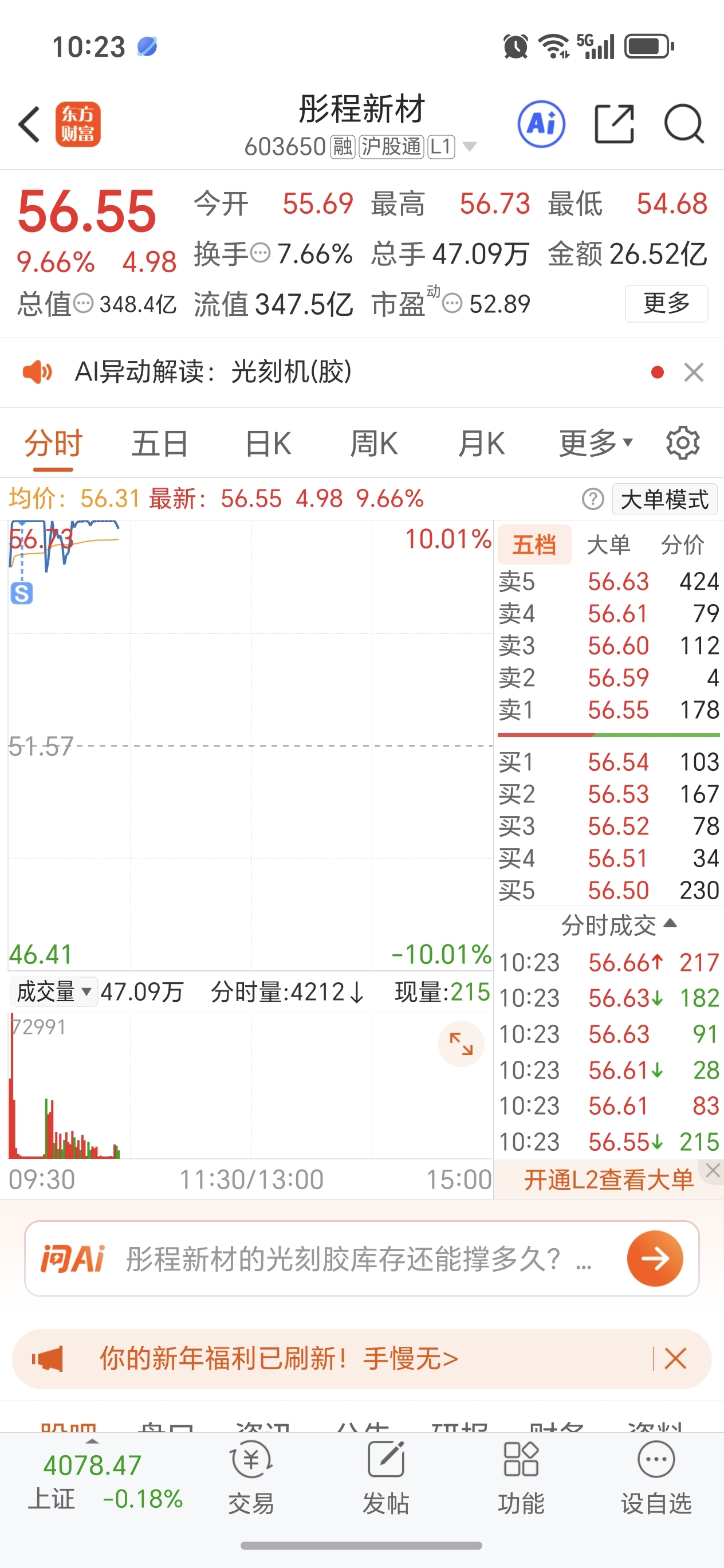 $彤程新材(SH603650)$ 一直开,走了