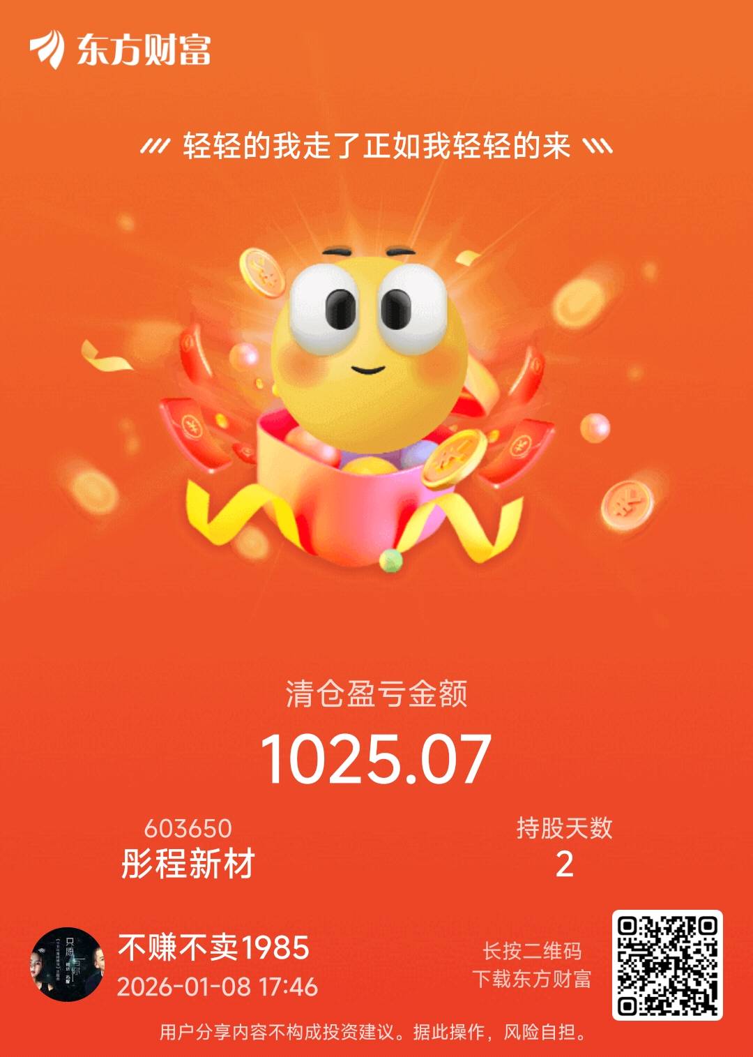 郑重声明:用户在财富号/股吧/博客等社区发表的所有信息(包括但不限于文字、视频、音频、数据及图表)仅代表个人观点,与本网站立场无关,不对您构成任何投资建议,据此操作风险自担。请勿相信代客理财、免费荐股和炒股培训等宣传内容,远离非法证券活动。请勿添加发言用户的手机号码、公众号、微博、微信及QQ等信息,谨防上当受骗!