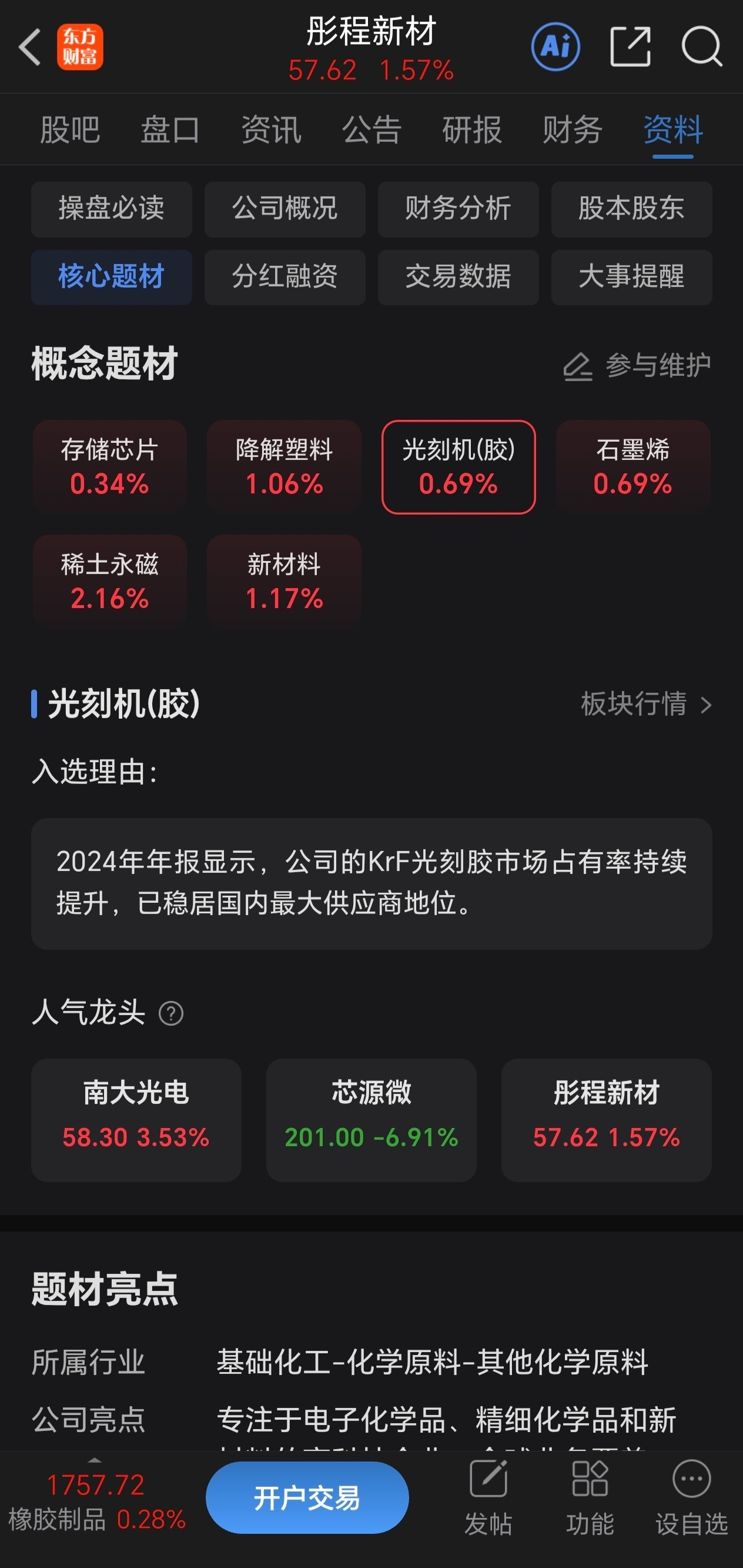$彤程新材(SH603650)$ 楼下卖飞了?全文只字不提彤程新材,那我来给你加上。