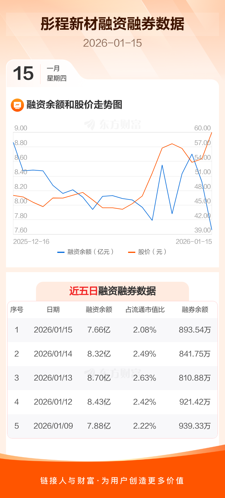 交易所最新数据显示,彤程新材于2026年1月15日获融资买入1.90亿元,融资偿还2.56亿元,当日融资净偿还6600.32万元。目前,该股融资余额7.66亿,占流通市值比例为2.08%。