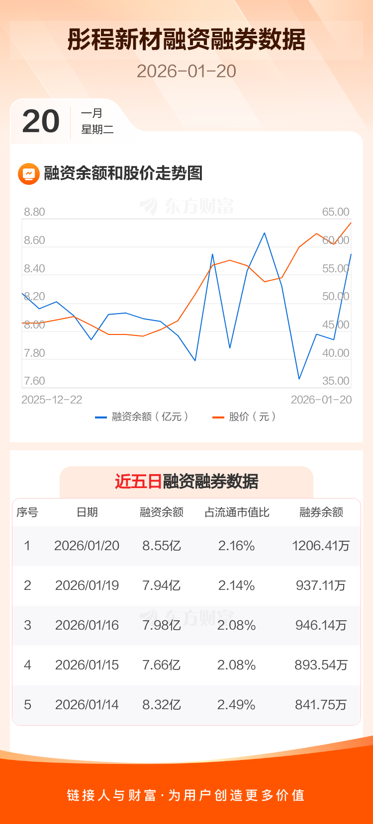 交易所最新数据显示,彤程新材于2026年1月20日获融资买入3.02亿元,融资偿还2.41亿元,当日融资净买入6062.91万元。目前,该股融资余额8.55亿,占流通市值比例为2.16%。