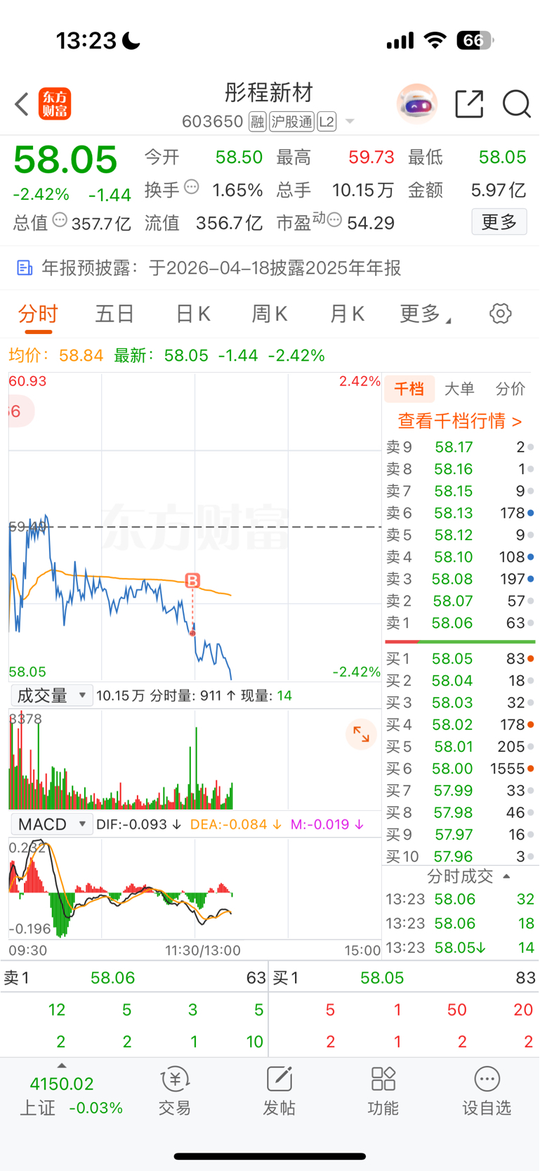 $彤程新材(SH603650)$ 每次到58.50都不下去,我以为是有强支撑,刚买进来就上当了