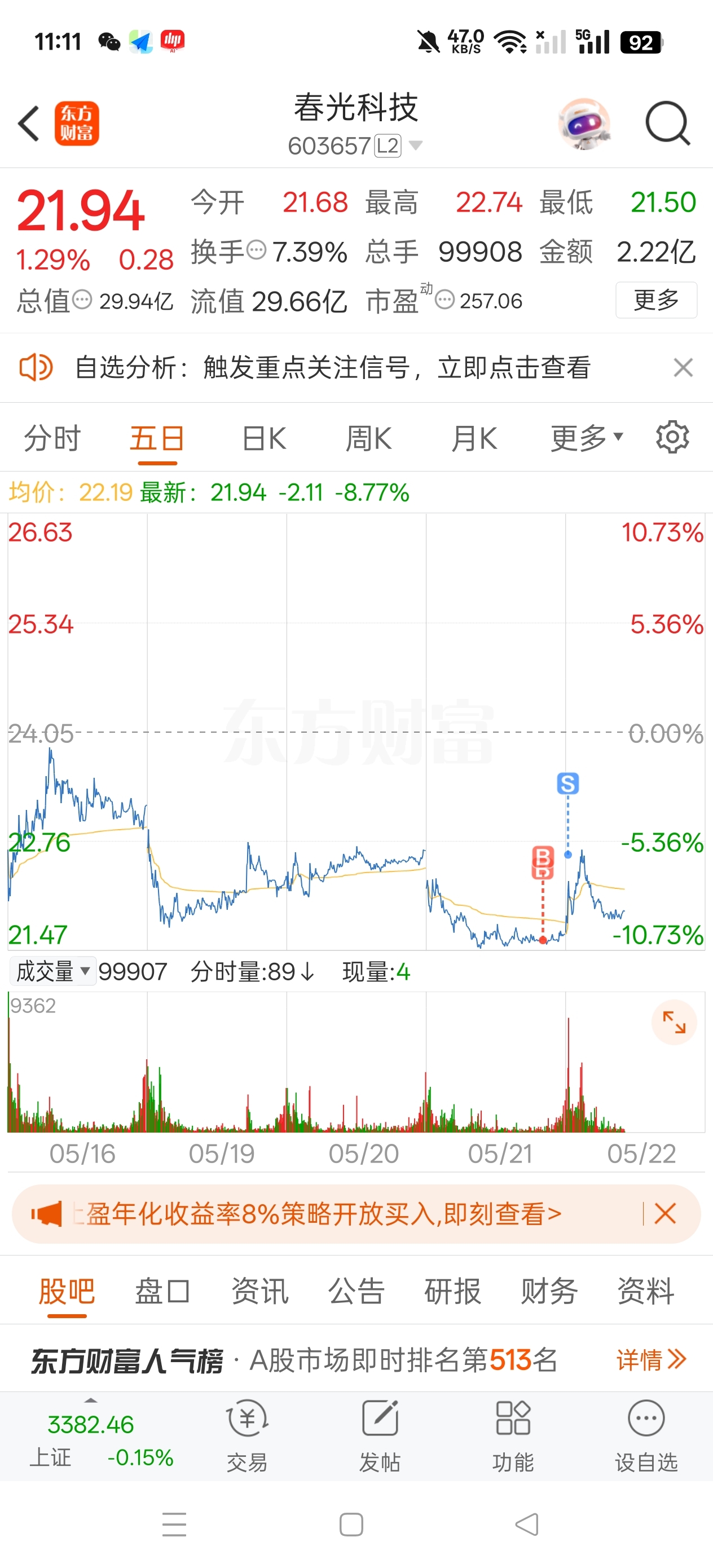 $春光科技(SH603657)$