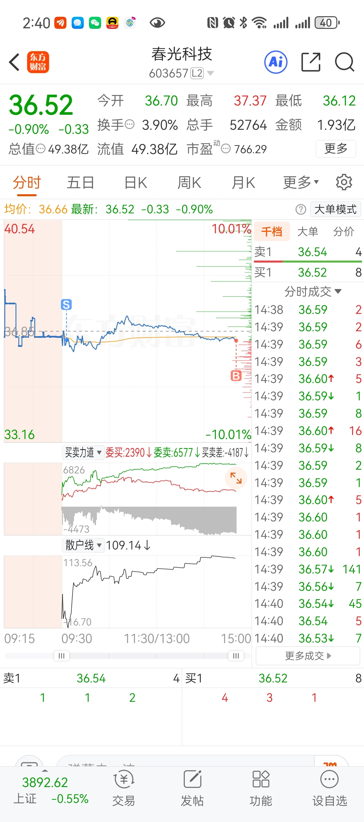 $春光科技(SH603657)$ 早盘资金借出去用一下,还回来了