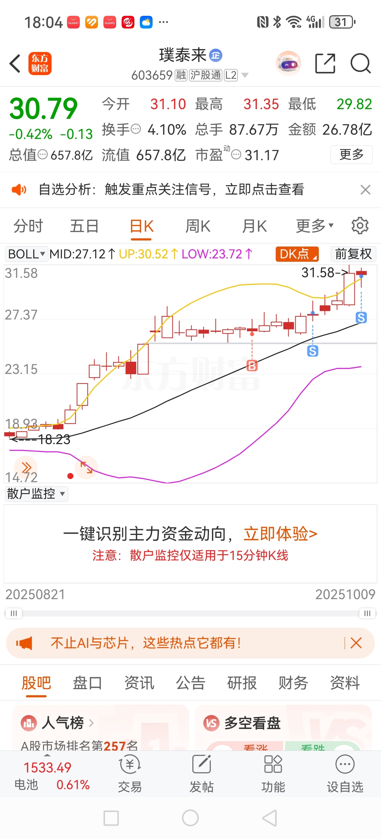 $璞泰来(SH603659)$ 我是不格局了,今天全跑了,买了上海贝岭,留下的哥哥姐姐发财