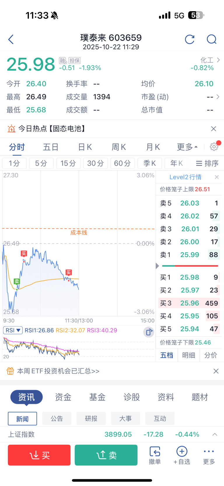 $璞泰来(SH603659)$ 我简直就是天才 一面两吃 26卖 26.32买,现在又跌破26