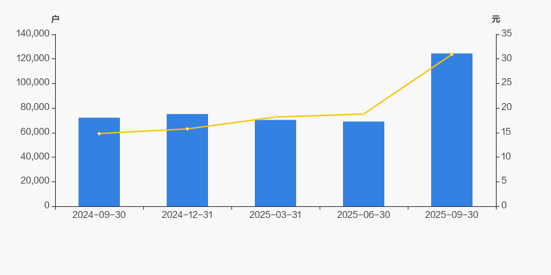 2024年9月30日至今,公司股东户数显著大幅增长,区间涨幅达72.60%。2024年9月30日至2025年9月30日区间股价上涨108.96%。
