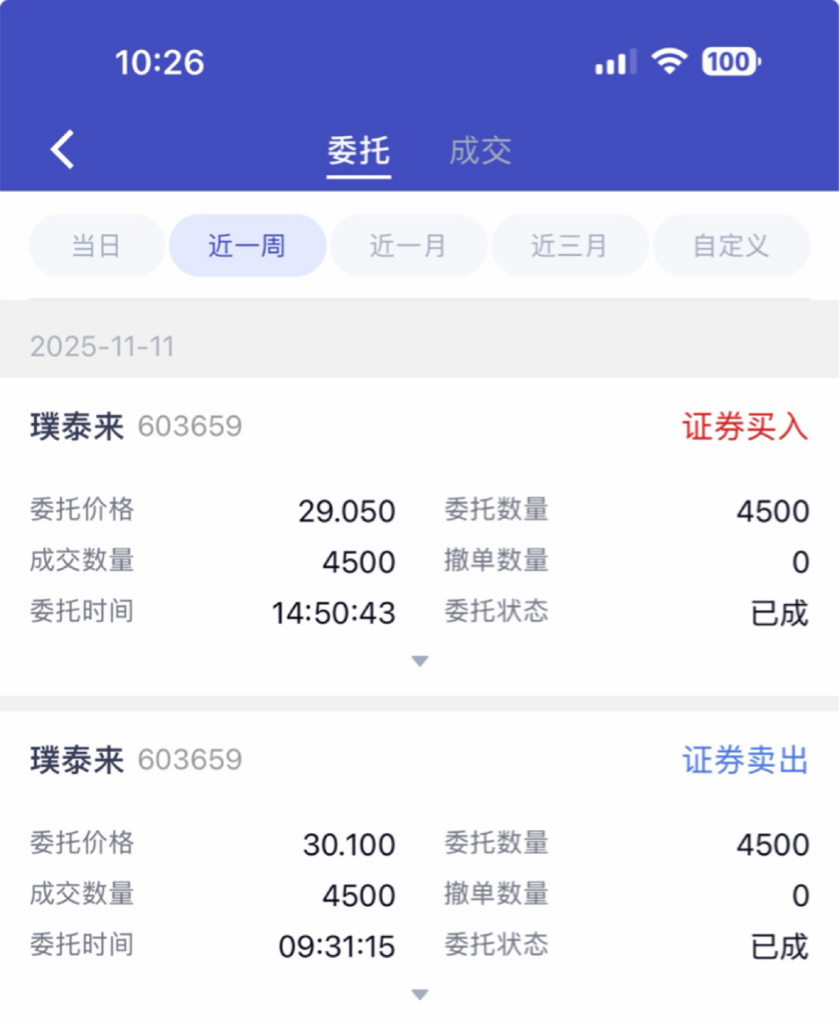 $璞泰来(SH603659)$ 10号29.57买入,11号30.10卖出,尾盘29.05买入,12号29.45卖出