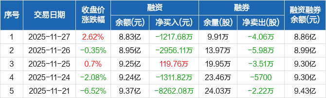 璞泰来:融资净偿还1217.68万元,融资余额8.83亿元(11-27)