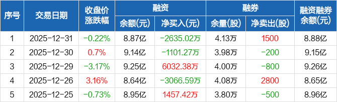 璞泰来:融资净偿还2635.02万元,融资余额8.87亿元(12-31)