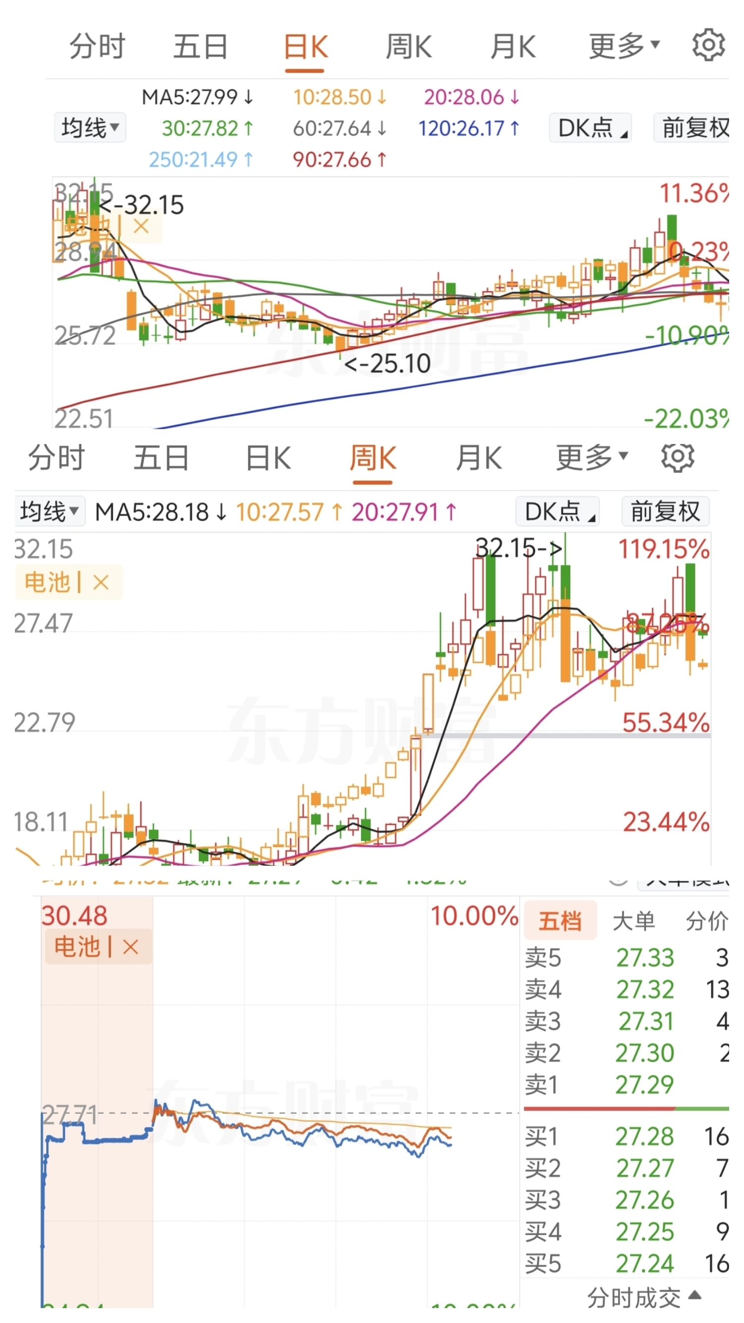 $璞泰来(SH603659)$ 日线,周线分时,和板块几乎一致,这股还有主力?
