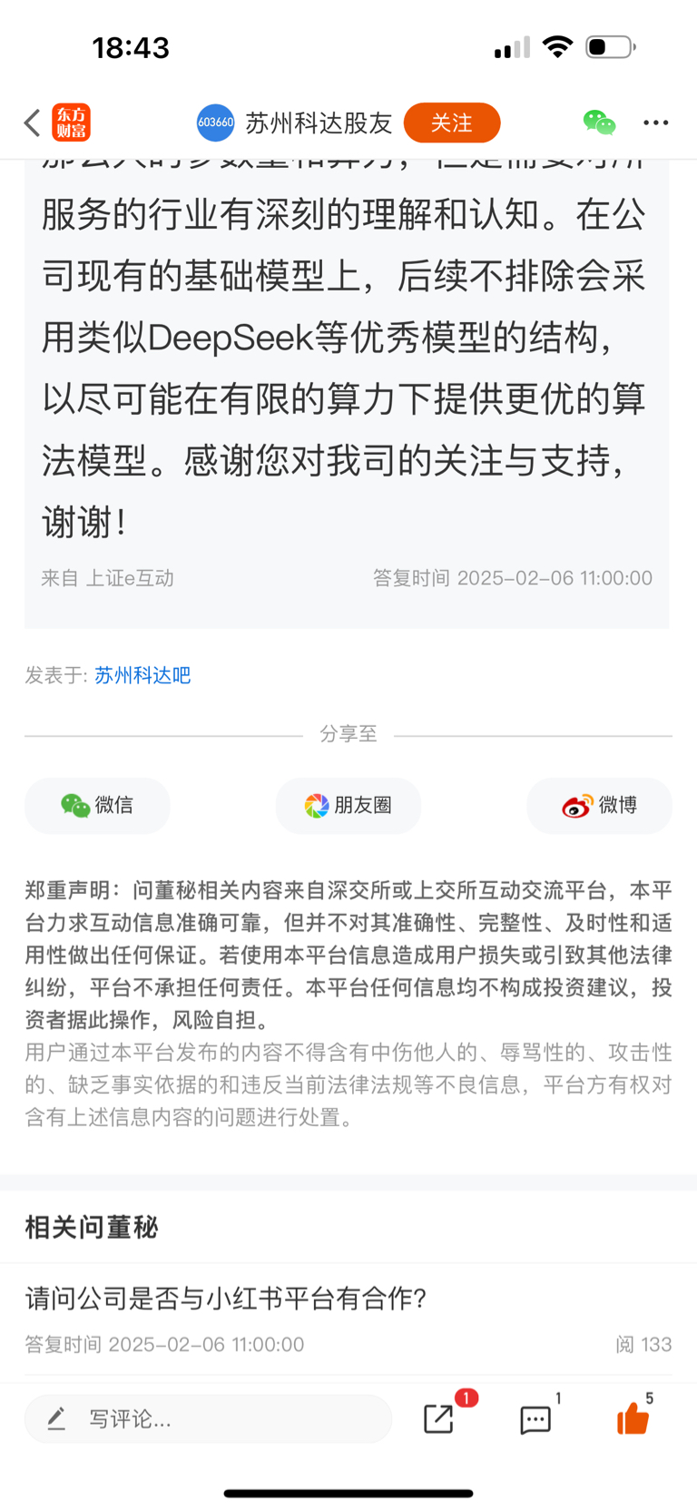 $苏州科达(SH603660)$ 后续不排除会采用类似DeepSeek等优秀模型的结构这点值得期待