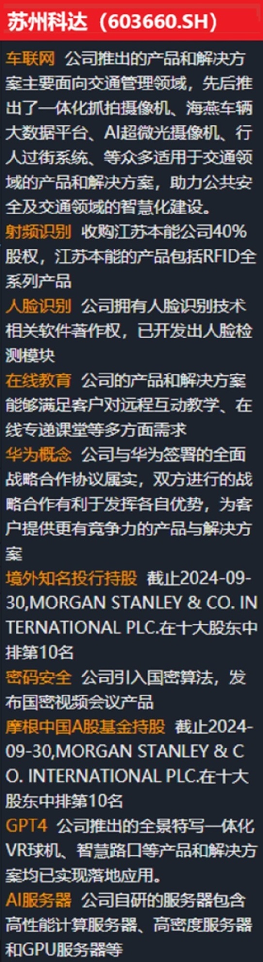 2024年10月17日,华为与苏州科达(603660)全面合作,推动轻量化AI基层医疗智能监控等,聚焦大模型应用深入融合!内容包含智慧城市、智慧医疗、智慧教育等AI大模型应用领域合作。